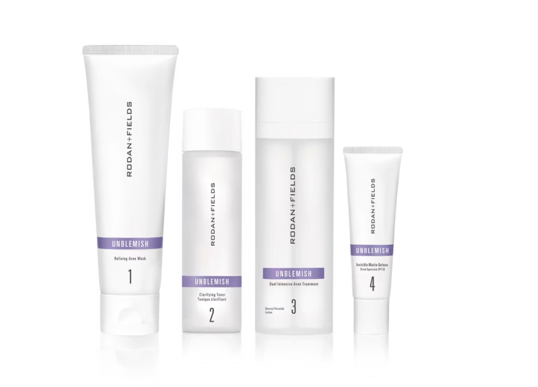 Clear Skin, Smooth Confidence Break up with breakouts — and wrinkles! Our powerful 4-step UNBLEMISH Regimen targets adult acne while visibly minimizing fine lines, pores, and uneven texture for clearer, smoother, younger-looking skin.