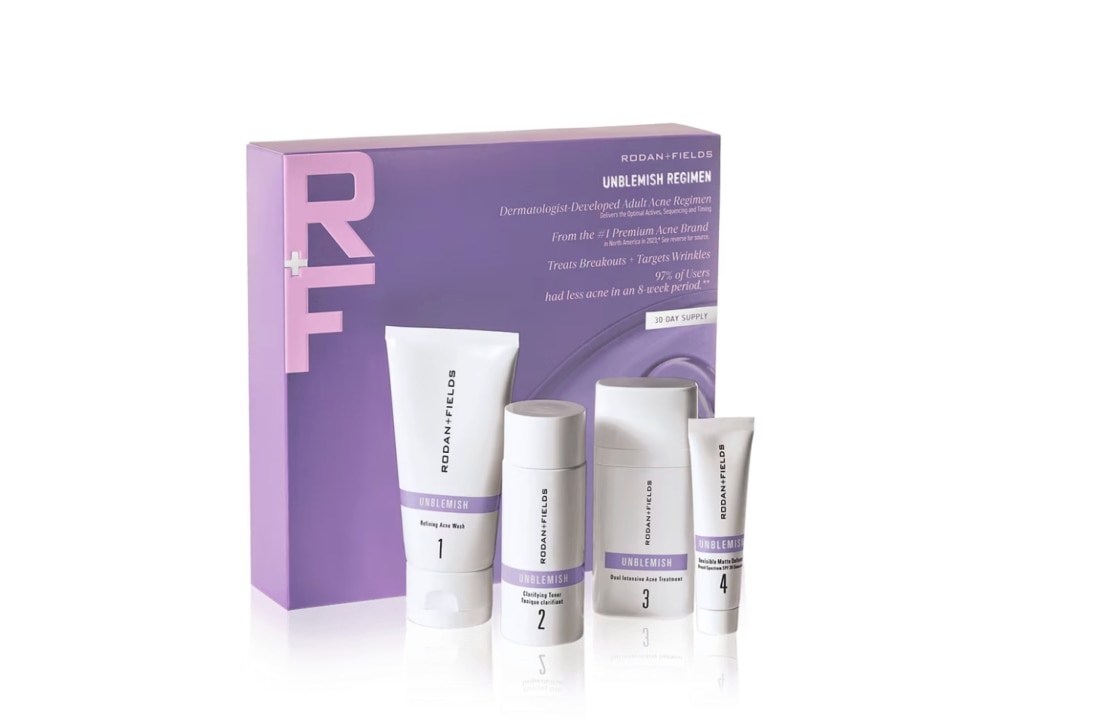 Clear Skin, Smooth Confidence Break up with breakouts — and wrinkles! Our powerful 4-step UNBLEMISH Regimen targets adult acne while visibly minimizing fine lines, pores, and uneven texture for clearer, smoother, younger-looking skin.