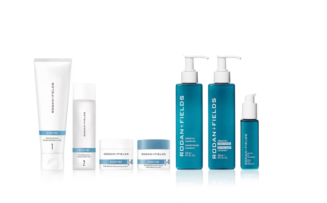 Our best-selling REDEFINE Regimen for anti-aging skincare pairs with the Smooth+ Regimen for silky, frizz-free hair.